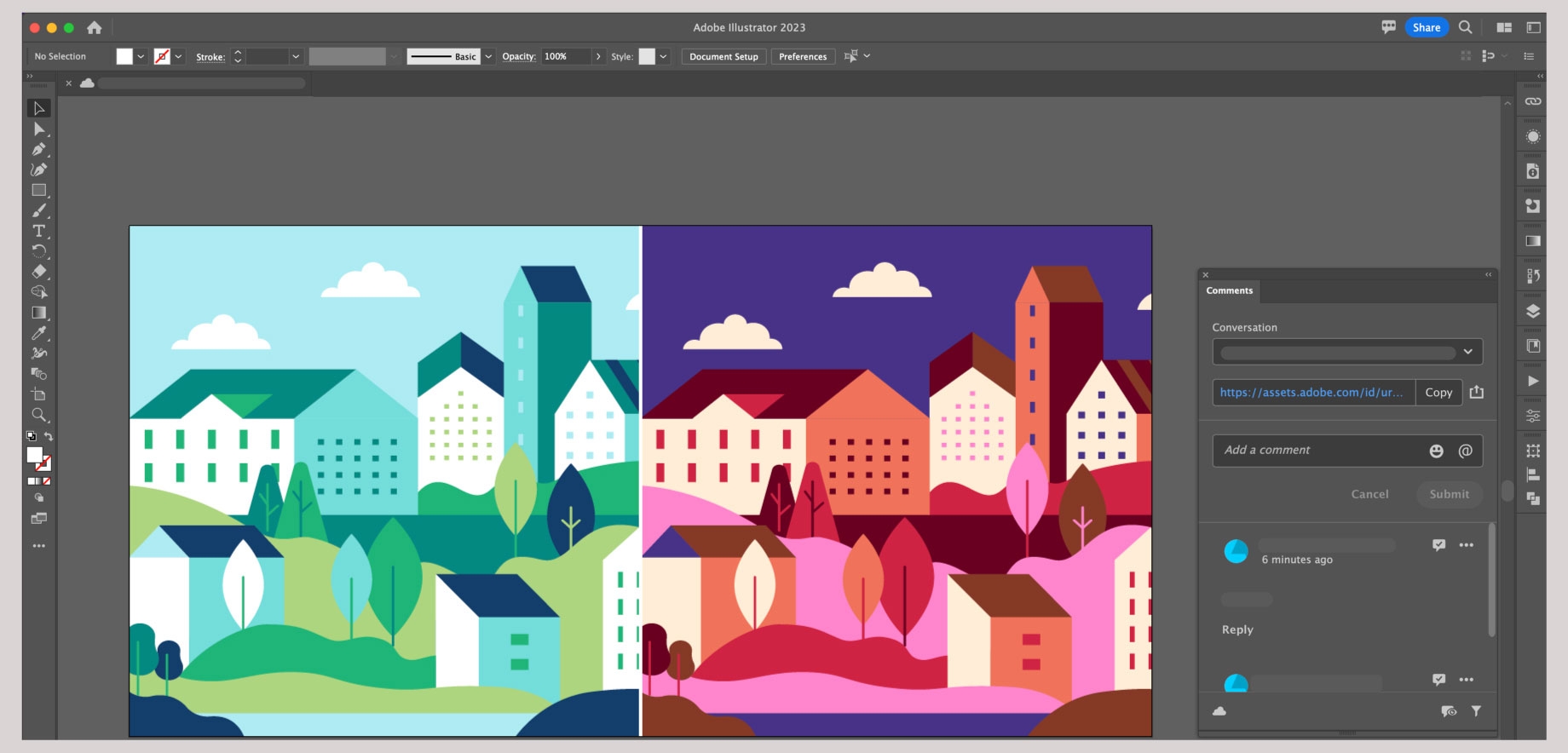 Pracujesz w zespole? Przeczytaj, jak zapraszać współpracowników do bezpośredniego przeglądania i udostępniania komentarzy do dokumentów w chmurze programu Illustrator.