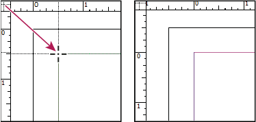 Wykonaj jedną z poniższych czynności:- Aby przesunąć punkt zerowy, przeciągnij go z punktu przecięcia miarki poziomej i pionowej aż do miejsca na układzie, gdzie ma się on znaleźć.