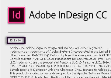 Przed wykonaniem poniższych czynności upewnij się, że w systemie zainstalowano program InDesign 13.1. Możesz sprawdzić wersję programu InDesign zainstalowanego w systemie, przechodząc do Pomoc > O InDesign.