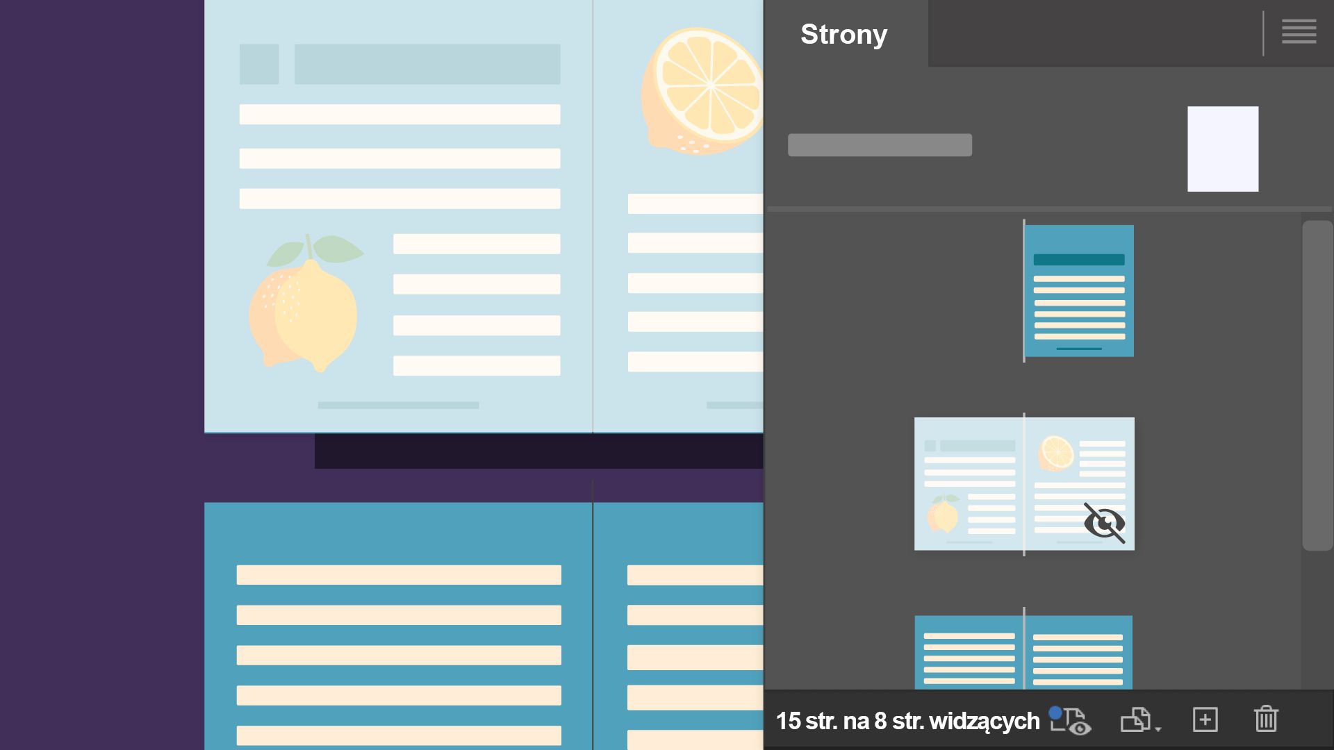 Nowa opcja przełączania pozwala kontrolować widoczność ukrytej strony widzącej na obszarze roboczym. Pomaga utrzymać porządek w miejscu pracy. Automatyczna numeracja stron pomija ukryte strony widzące niezależnie od statusu widoczności.