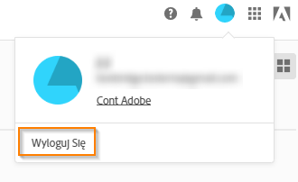 Uruchom aplikację Creative Cloud Desktop. Kliknij ikonę Konto w prawym górnym rogu, a następnie wybierz opcję Wyloguj się.