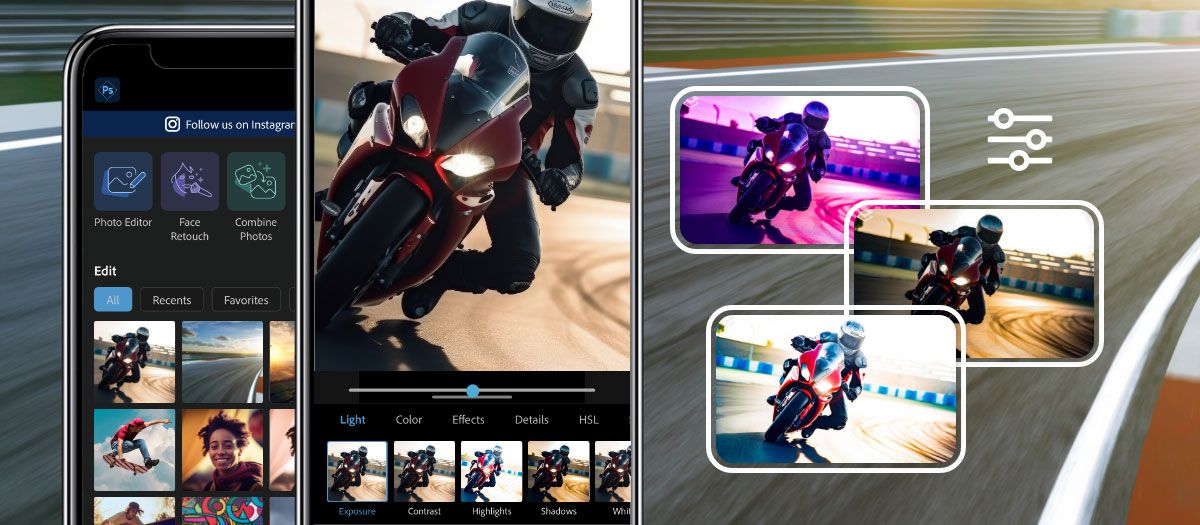 Bez wysiłku przekształcaj swoje zdjęcia za pomocą narzędzi dopasowywania przy użyciu aplikacji Photoshop Express.