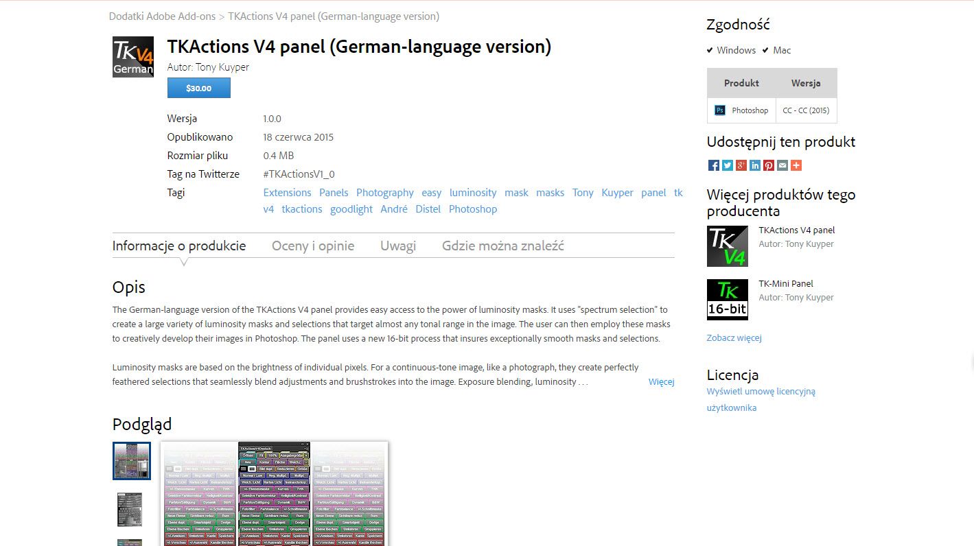 Masz ulubioną wtyczkę z poprzedniej wersji programu Photoshop, której chcesz używać w najnowszej wersji? Na stronie Dodatki Adobe (lub w witrynie zewnętrznego programisty) sprawdź, czy istnieje zaktualizowana wersja wtyczki.