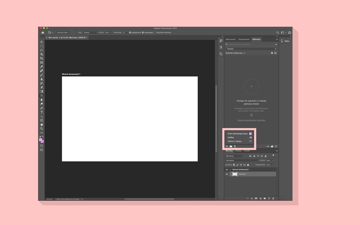 Wzorki zostaną zapisane w bibliotekach jako próbki, które będą dostępne jako powtarzające się wypełnienia w programie Photoshop.