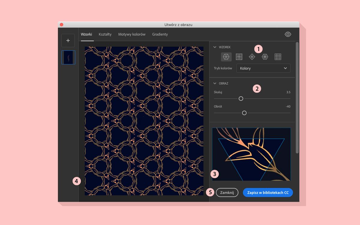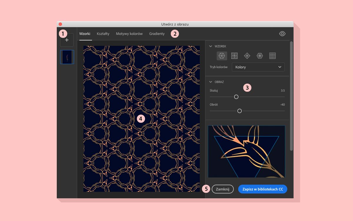 Obrazy możesz podzielić na wzorki geometryczne, aby użyć ich w programie Photoshop lub Illustrator.