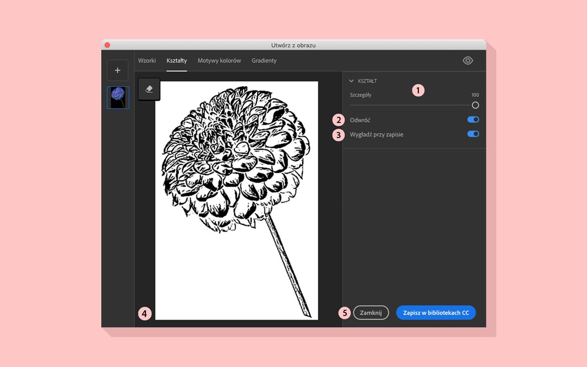 Rozszerzenie Capture do programu Photoshop pozwala szybko przekształcać obrazy (z dokumentu lub dysku twardego) w elementy projektowe, takie jak motywy kolorystyczne, wzorki, kształty wektorowe czy gradienty. Są one automatycznie zapisywane w bibliotekach i od razu dostępne w bieżącym projekcie — oraz w innych aplikacjach firmy Adobe.