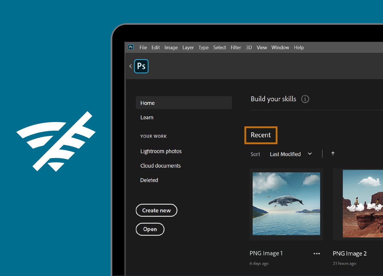 - Photoshop (na komputer lub tablet iPad): Przejdź do karty Pliki > Twoje pliki na ekranie początkowym aplikacji.