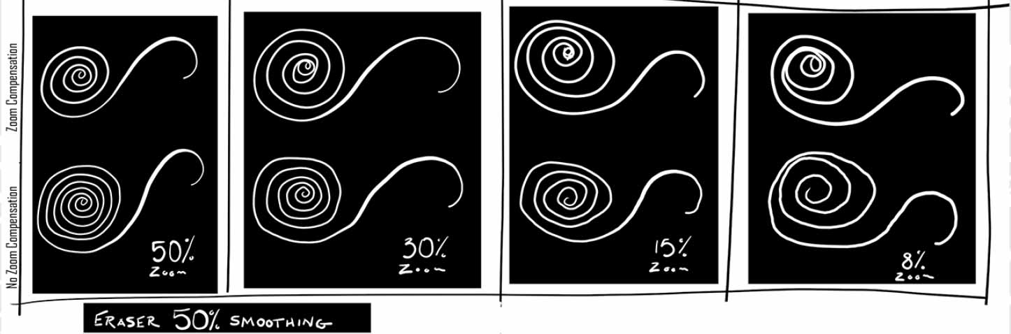 - Blok: Wymazuje piksele w kwadratowym kształcie o stałym rozmiarze bez kontroli krycia.