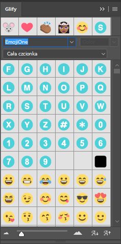Ostatnio używane emotikony są wyświetlane w górnym wierszu panelu Glify.