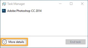 Kliknij polecenie Więcej szczegółów, aby wyświetlić szczegółowe informacje w oknie Menedżer zadań.