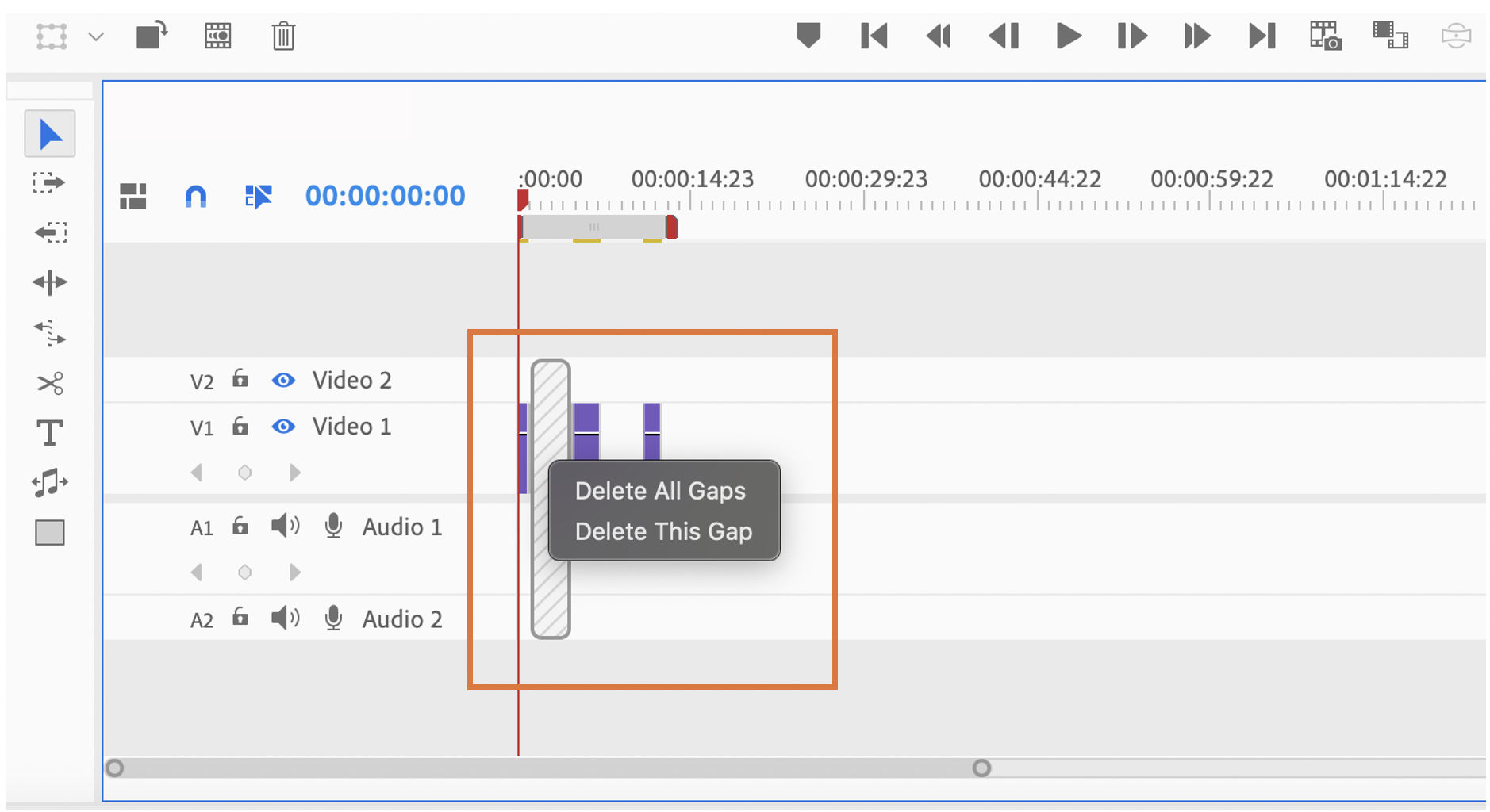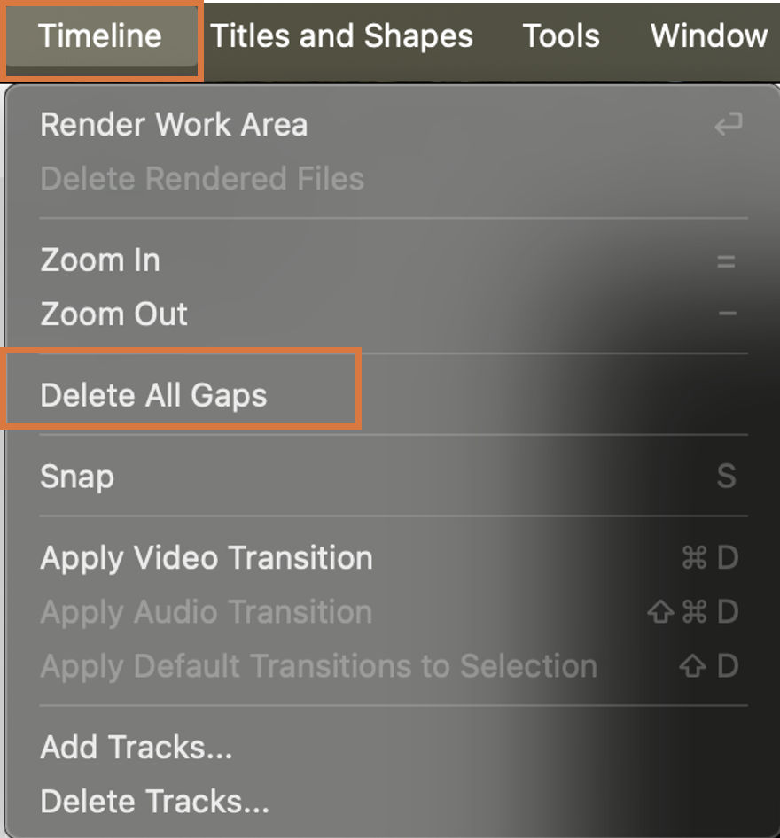 Delete All Gaps: Quickly remove every gap across the entire Timeline with a single click.