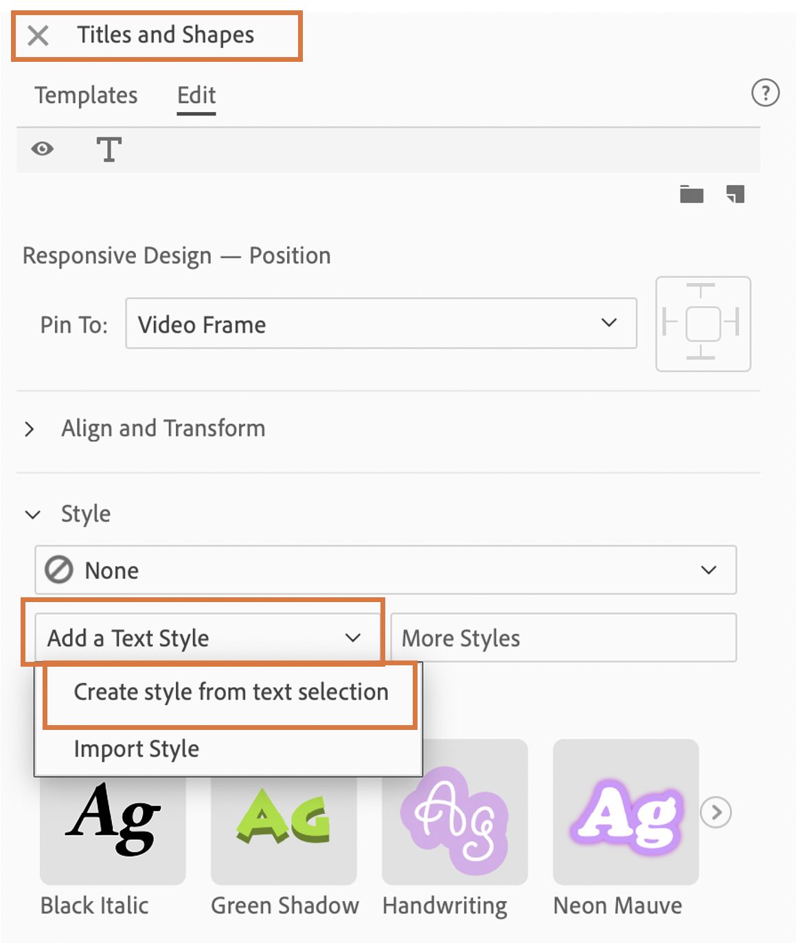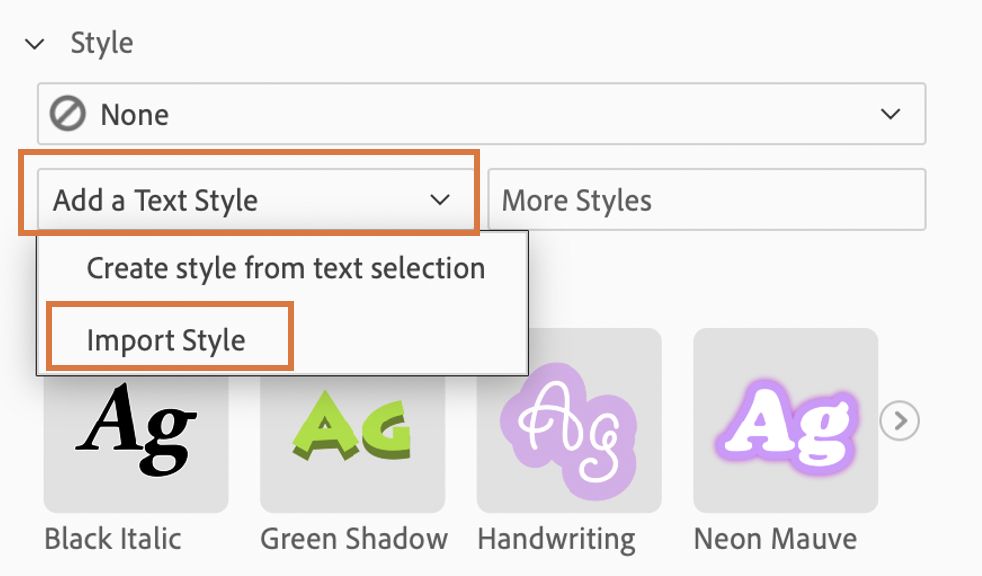 You can also import text styles from your device using the Import Style option available under the Add a Text Style icon.