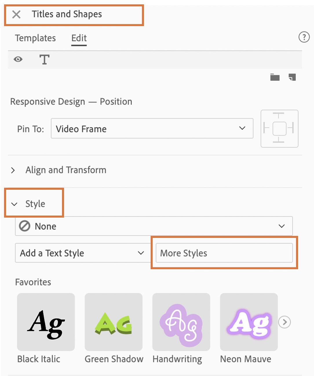 NotePremiere Elements provides more than 30 pre-built text styles to help you get started.