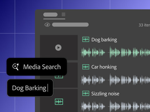 Locating sounds and dialogue in your footage is easier than ever in Premiere. The Search panel now includes audio. Just type something like “dog barking” or “siren” and find the sound you're looking for.