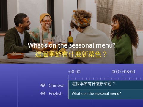Create captions and subtitles instantly. Automatically transcribe video dialogue and translate it into 27 different languages with Premiere Pro, without the need for a third-party translation service.