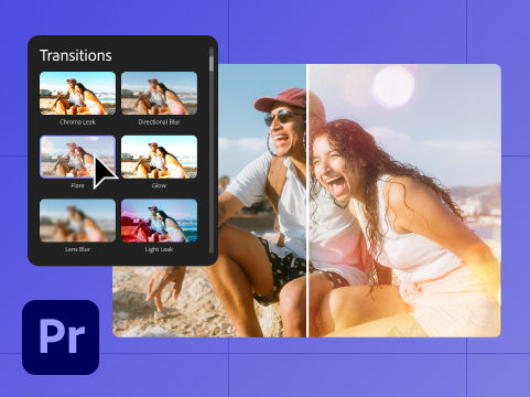 The possibilities are endless with Film Impact's library, now built into Premiere Pro. The “Surprise me” button randomizes transitions and animations for thousands of effect variations — all of which playback in real-time.