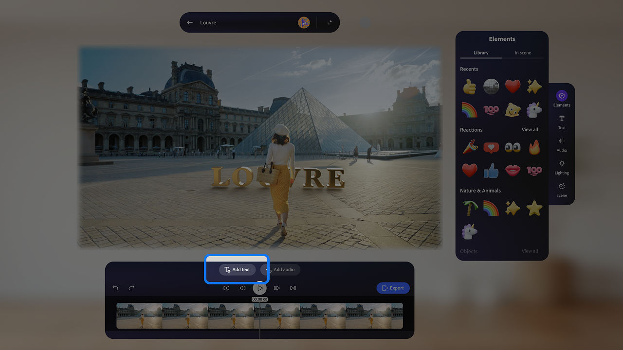 - Select the Add text button at the top of the timeline.