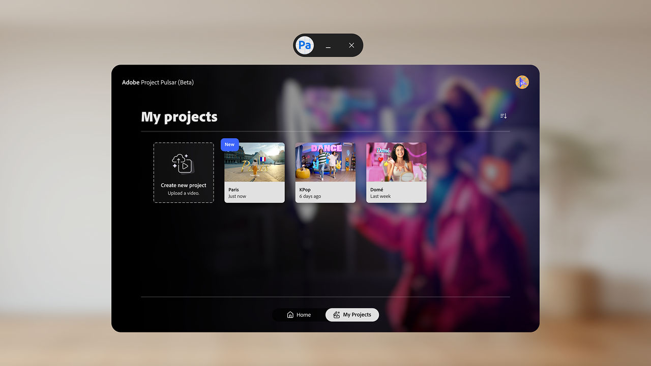 Projects processed in the background but not opened in the Project Pulsar editor are marked with a blue “New” badge.