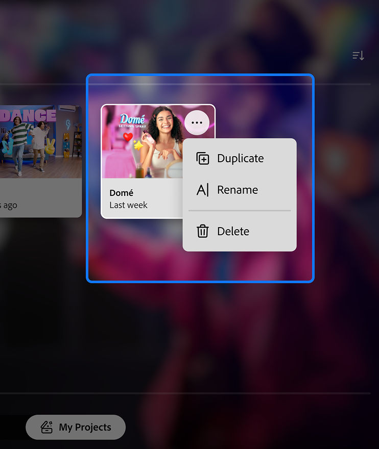 Select the My Projects tab at the bottom of the Home page to view and manage previously created projects.
