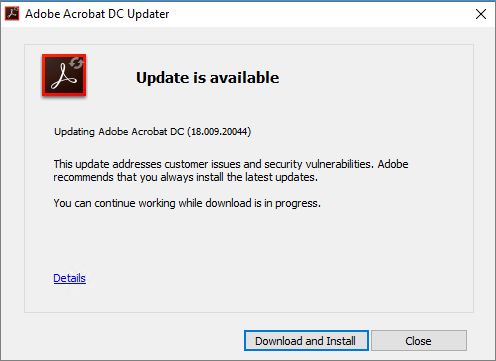 A Adobe recomenda atualizar para a versão mais recente do aplicativo Adobe Acrobat para aproveitar as melhorias de segurança e estabilidade.
