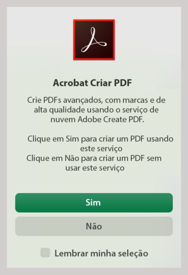 Para aplicativos do Microsoft Office, como Word, Excel e PowerPoint, clique no botão Criar PDF  na faixa de opções do Acrobat.