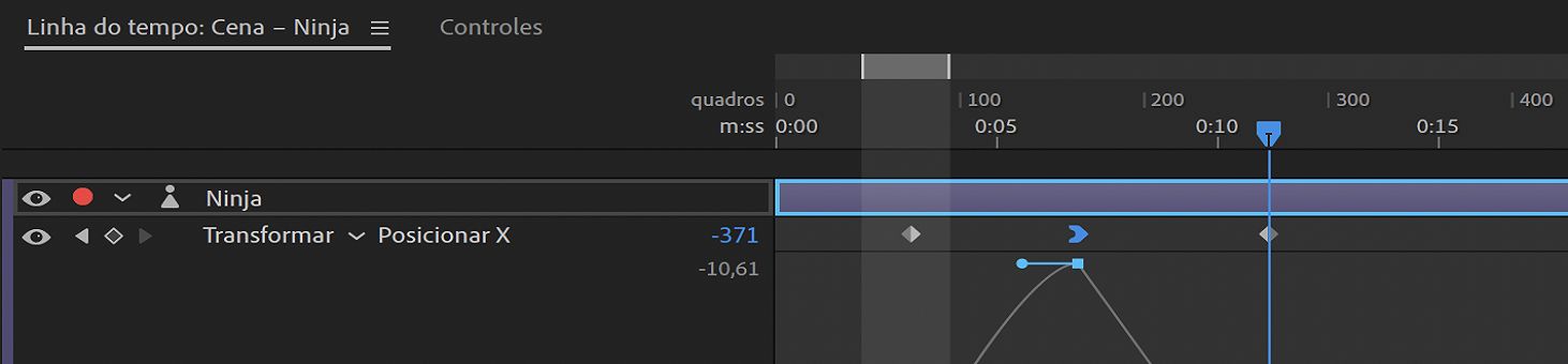 Os quadros-chave são usados para definir parâmetros para comportamentos, geralmente alterando-os com o tempo. Um quadro-chave marcará o ponto em que você especifica um valor para uma propriedade de camada, como a posição de uma marionete. Os valores entre quadros-chave são interpolados por padrão. Quando você usa quadros-chave para criar uma mudança com o passar do tempo, você normalmente usa pelo menos dois quadros-chave – um para o estado no início da mudança e um para o novo estado no final da mudança.
