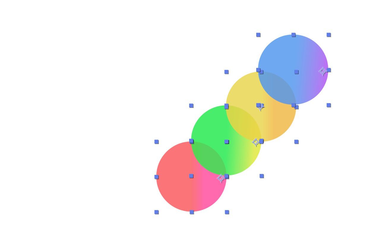 As propriedades Position das camadas de forma têm deslocamento no eixo Y para empilhar os círculos verticalmente.