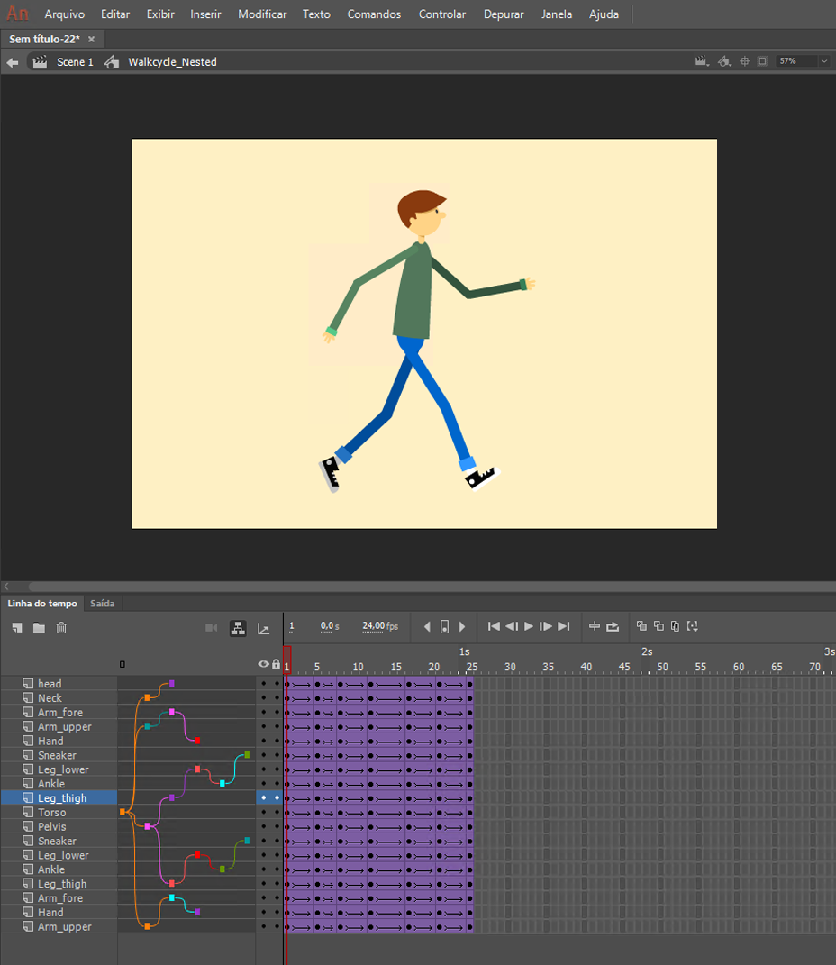- Trabalho com articulações de personagens no Animate