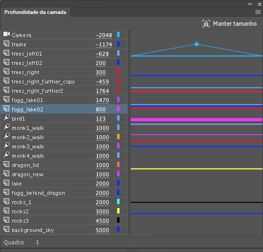 Conforme ilustrado na captura de tela acima, os valores de profundidade de camada são exibidos ao lado do nome de cada camada para um determinado quadro.