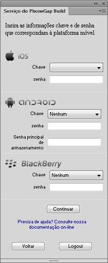 Para obter ajuda para uso do serviço do PhoneGap Build, consulte a documentação do PhoneGap Build.