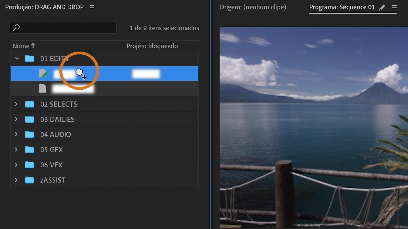 Arrastar e soltar itens de projeto em projetos de uma produção