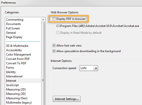 Resetați Afișare PDF din preferințele browserului (Acrobat/Reader X sau versiuni mai vechi)