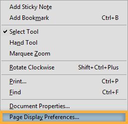 Din Reader sau Acrobat, faceți clic dreapta pe fereastra documentului și selectați Preferințe afișare pagină.