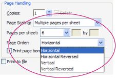 Puteți să tipăriți mai multe pagini ale unui fișier PDF pe o singură coală de hârtie. Imprimarea mai multor pagini pe o foaie este numită, de asemenea, imprimare „N-up” (de exemplu 2-up sau 6-up). Puteți să specificați cum sunt ordonate paginile, fie orizontal de-a lungul paginii, fie pe coloane verticale.