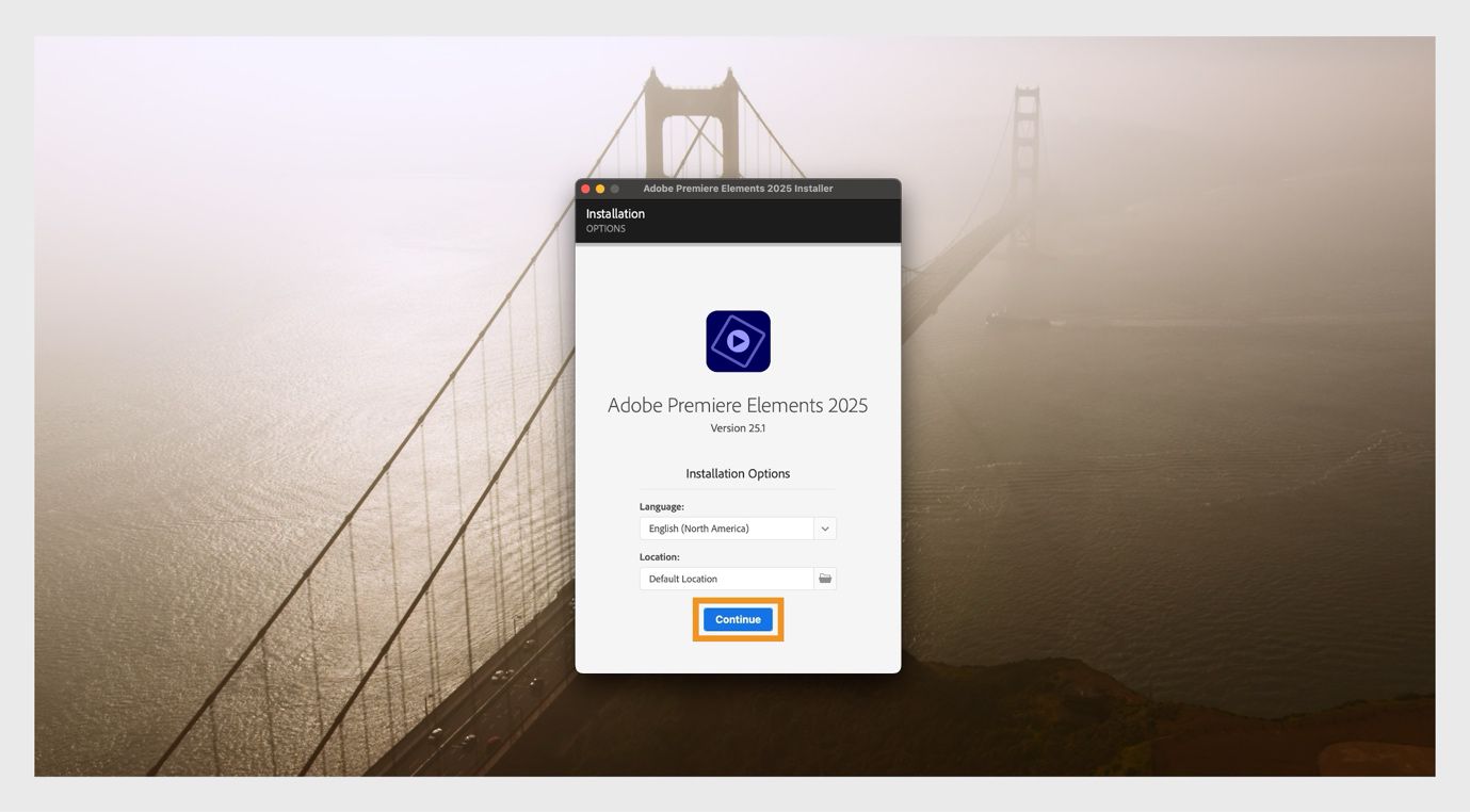 În fereastra Adobe Premiere Elements <year> , selectați Install Adobe Premiere Elements <year>.