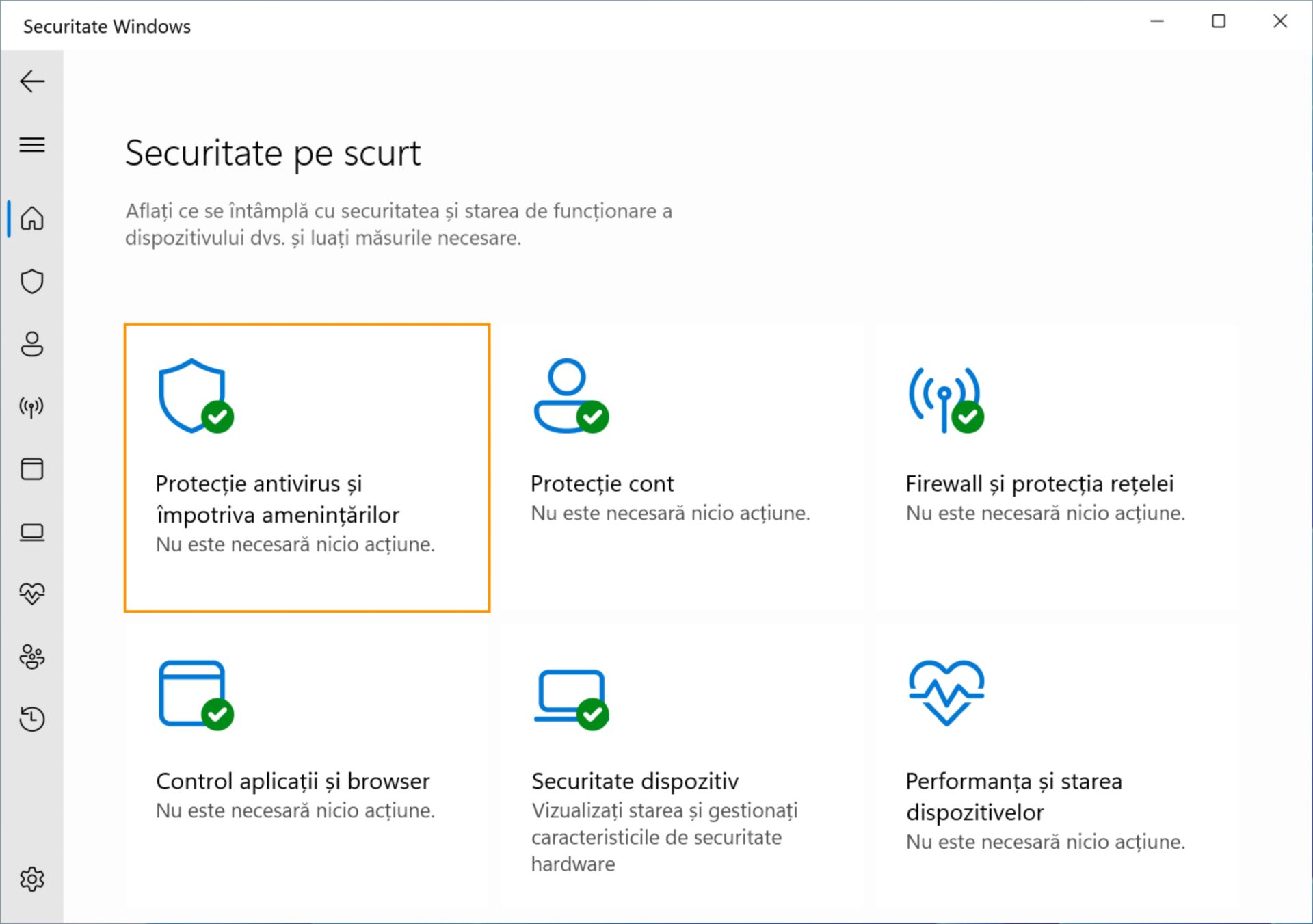 De asemenea, puteți selecta Start > Setări > Actualizare și securitate > Protecție antivirus și împotriva amenințărilor.
