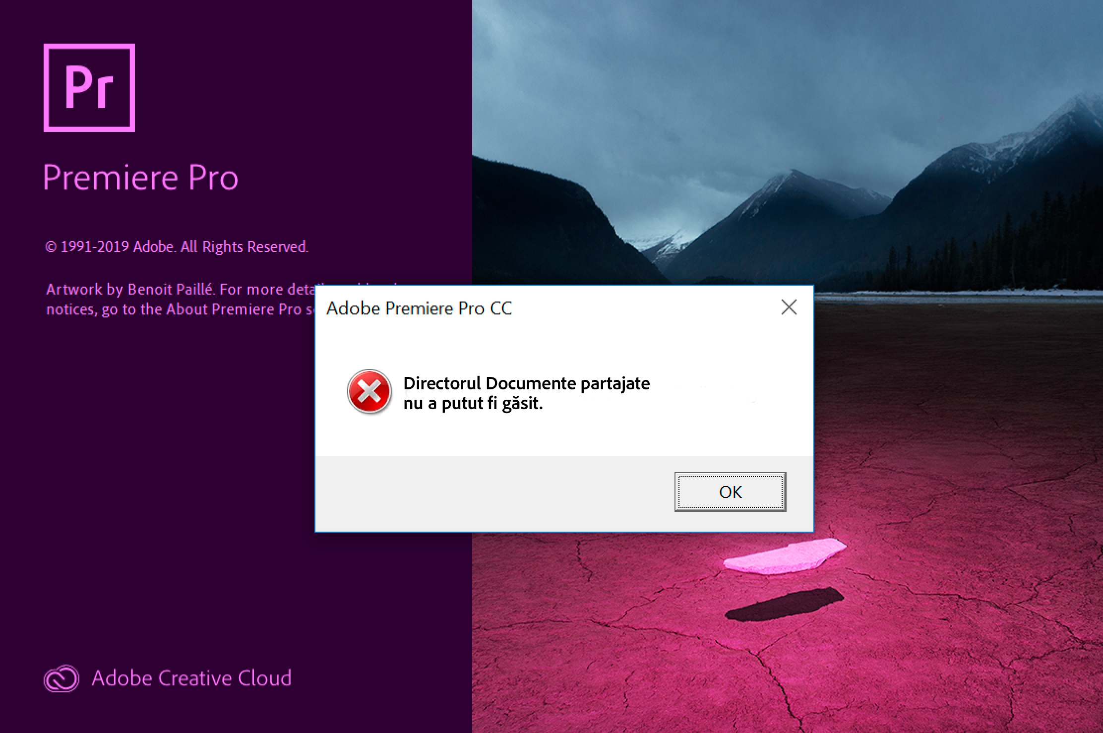 Atunci când Accesul controlat la directoare este activat, Premiere Pro în versiunea 13.1.1 sau o versiune ulterioară se blochează la lansare și raportează următorul mesaj de eroare