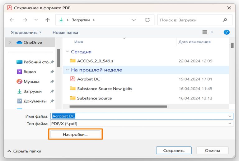 В диалоговом окне Сохранить как выберите Настройки.