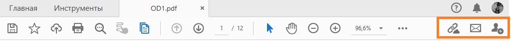 Можно отправить ссылку другим пользователями для просмотра и комментирования документа PDF. Общий документ открывается на любом устройстве и надежно хранится в облачном хранилище Adobe. Получателям приходит электронное письмо со ссылкой для просмотра и комментирования документа в браузере без выполнения входа в учетную запись.