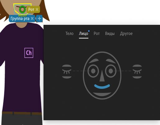 - Для параметров слоя (например, для функций «Моргание» и «Рот» поведения «Лицо») значения параметров устанавливаются на соответствующих слоях марионетки. Например, если найден слой «Улыбка», в значении параметра будет отображен путь к этому слою («Голова/Рот/Улыбка»). Если слой не найден, значение будет пустым. Можно использовать эту информацию для определения того, что слои марионетки используются не по назначению.