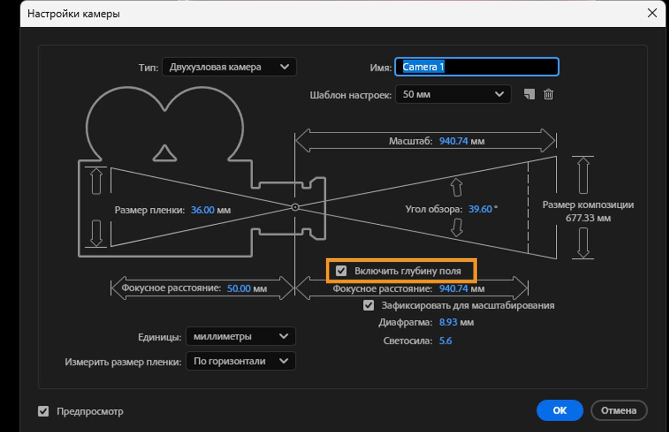 Включить глубину резкости в 3D-сцене