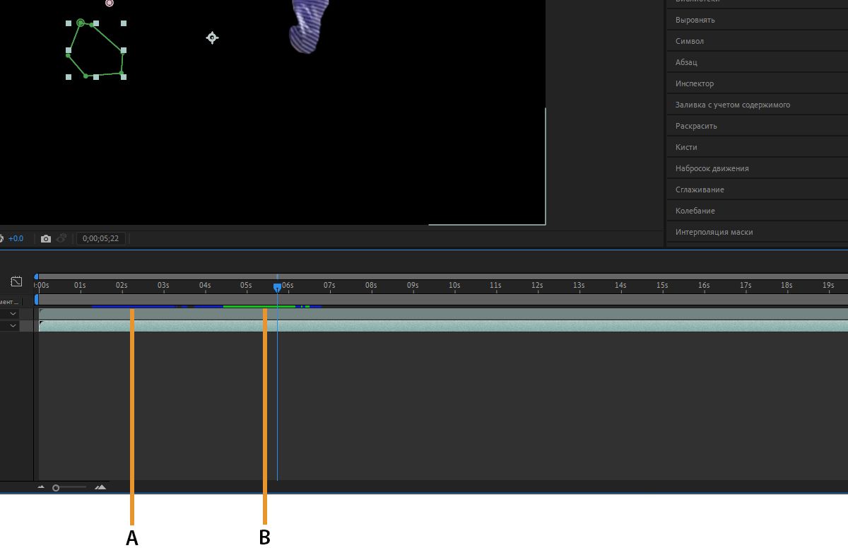 Чтобы создать эквивалент видимой области для одного слоя, можно нарисовать временную маску вокруг части обрабатываемого слоя. Рендеринг области за пределами маски не выполняется. Благодаря этому можно значительно повысить скорость работы с небольшими частями большого слоя. При этом следует учитывать, что если рендеринг пикселей, находящихся за пределами маски, не выполняется, вид композиции может значительно измениться. Подробнее о создании масок в After Effects.