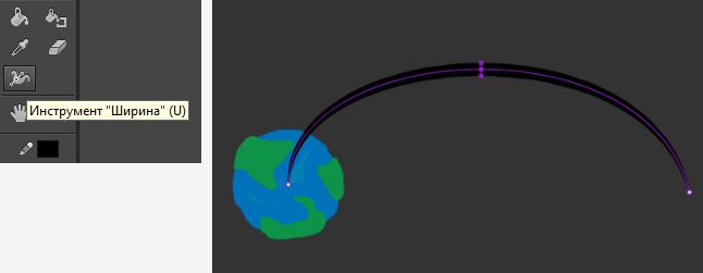 - Выберите инструмент «Ширина» (U) в наборе инструментов, щелкните в любой точке линии и перетащите маркеры для изменения ширины линии.