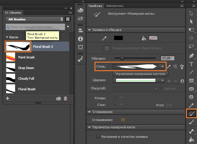 Использование кисти из библиотеки CC Library Использование кисти из библиотеки CC Library