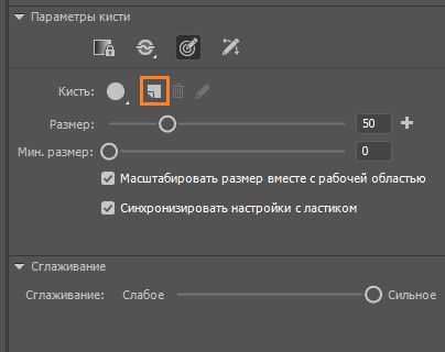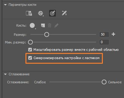 Синхронизация настроек между инструментами «Кисть» и «Ластик»