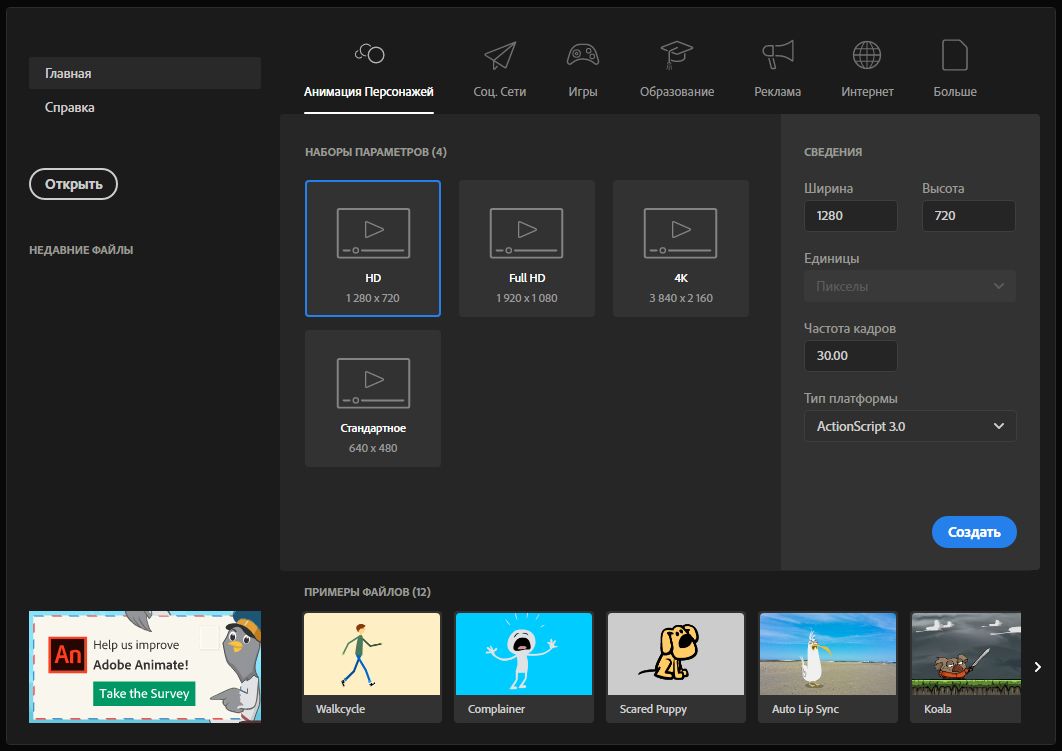 3. Создание и публикация документов HTML5 Canvas в Animate