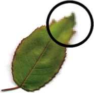 В растровых графических объектах изображения описываются с использованием точек, называемых пикселами, упорядоченных в сетке. Например, изображение листа описывается конкретным местоположением и цветовым значением каждого пиксела в сетке, при этом создается изображение, похожее на мозаику.
