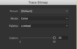 На палитре трассировки доступен небольшой набор цветов. Можно дополнительно уменьшить число выбранных цветов с помощью ползунка на шкале «Цвета».