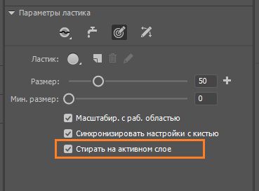 - Установите флажок Синхронизировать настройки с кистью в настройках инструмента «Ластик» (E).