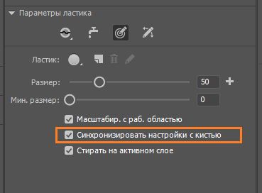 Синхронизация настроек между инструментами «Ластик» и «Кисть»